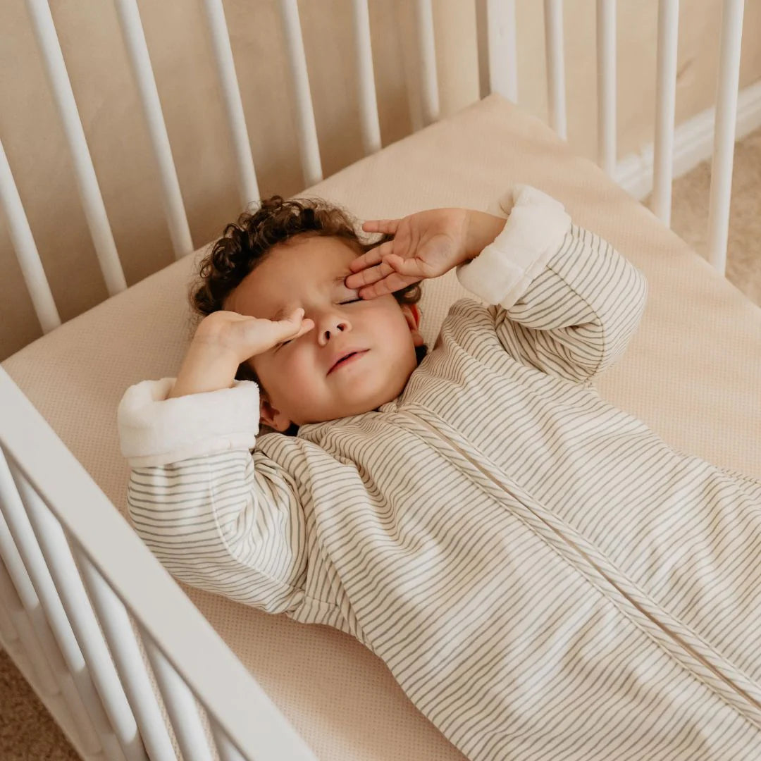 Belangrijk: koop een slaapzak nooit te groot. Als de hals of armopeningen te groot zijn, zou je baby kunnen wegzakken in de slaapzak.