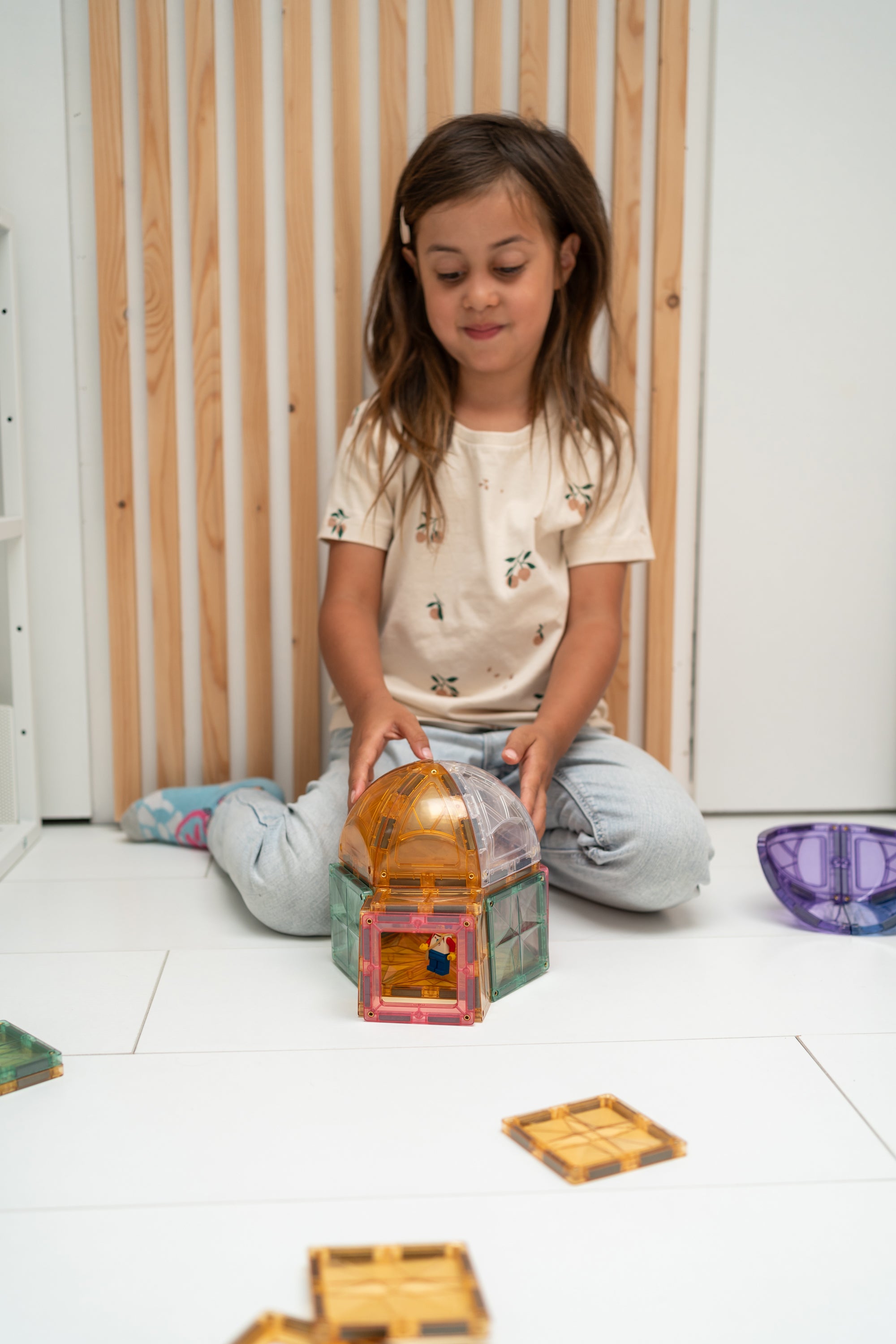 Magnetisch bouwen is een innovatieve en educatieve speelvorm waarbij kinderen structuren, torens en fantasiewerelden creëren door tegels met ingebouwde magneten aan elkaar te koppelen. In tegenstelling tot traditioneel constructiespeelgoed klikken de tegels automatisch aan elkaar vast, waardoor stevige en stabiele bouwwerken ontstaan. Dit type constructiespeelgoed voor kinderen stimuleert niet alleen de creativiteit, maar ook belangrijke vaardigheden zoals ruimtelijk inzicht, probleemoplossend denken en fijne motoriek.
