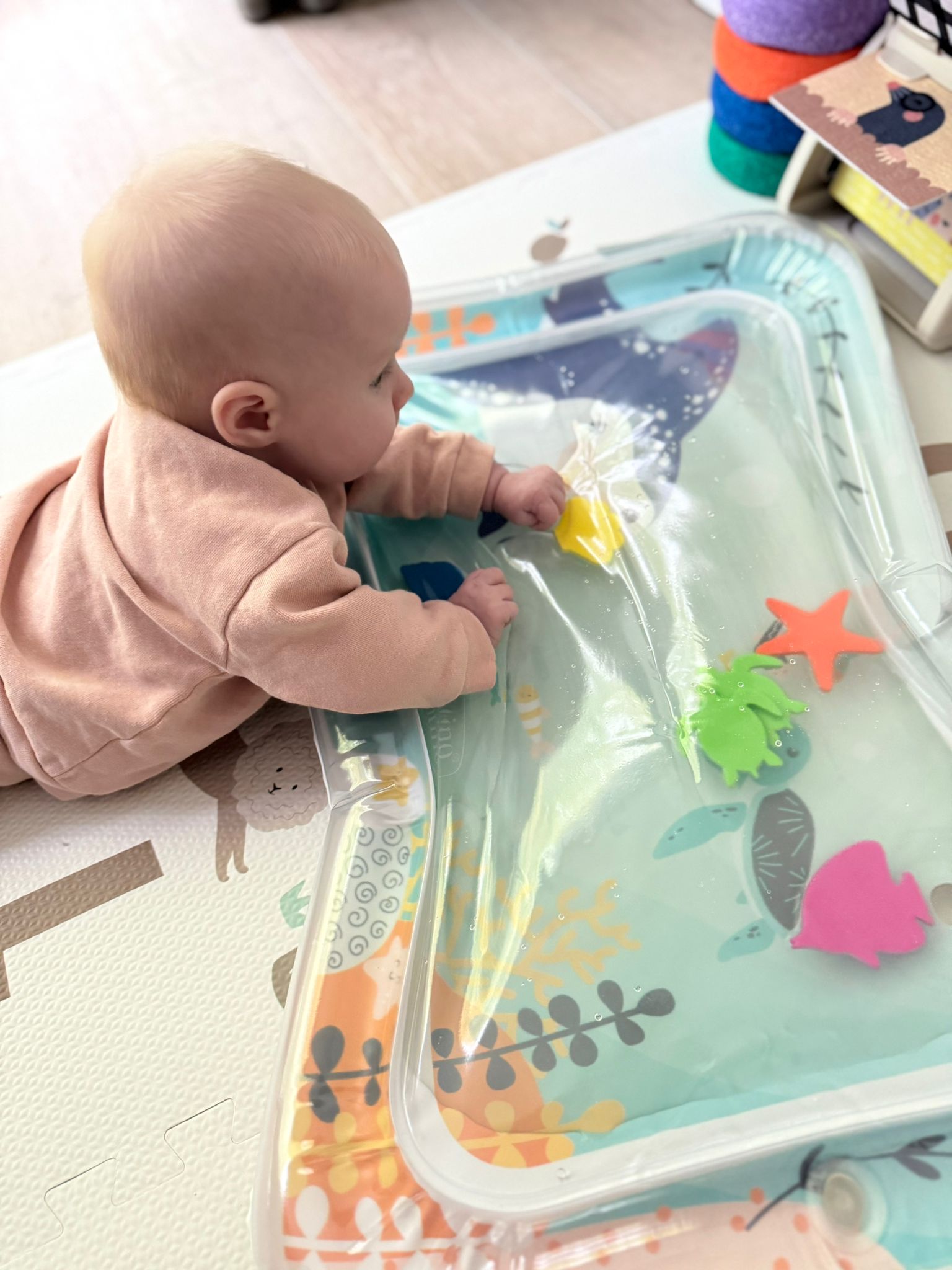Een watermat maakt tummy time boeiend en speels. De bewegende figuurtjes in het water prikkelen de zintuigen en moedigen je baby aan om te bewegen en te ontdekken.