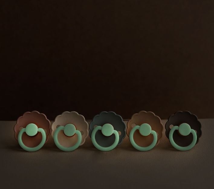 Bij De Gele Flamingo vind je prachtige BIBS en FRIGG glow-in-the-dark fopspenen, gemaakt van veilig, BPA-vrij materiaal. Ze laden vanzelf op in het licht en geven daarna een zacht gloedje af. Handig voor ouders, maar ook geruststellend voor baby’s en peuters die hun speentje ’s nachts zelf willen terugvinden.