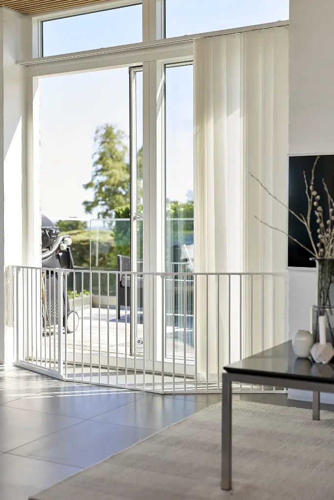 Multifunctioneel metalen hekje met schroefsysteem dat gebruikt kan worden voor openingen van 90 tot 146cm. Onbeperkt uitbreidbaar door extra panelen toe te voegen (apart verkrijgbaar). Hoogte: 70,50cm. Vrij te bepalen waar het deurpaneel geplaatst wordt. Kan langs beide zijden worden geopend. Gemakkelijk met één hand te openen.
