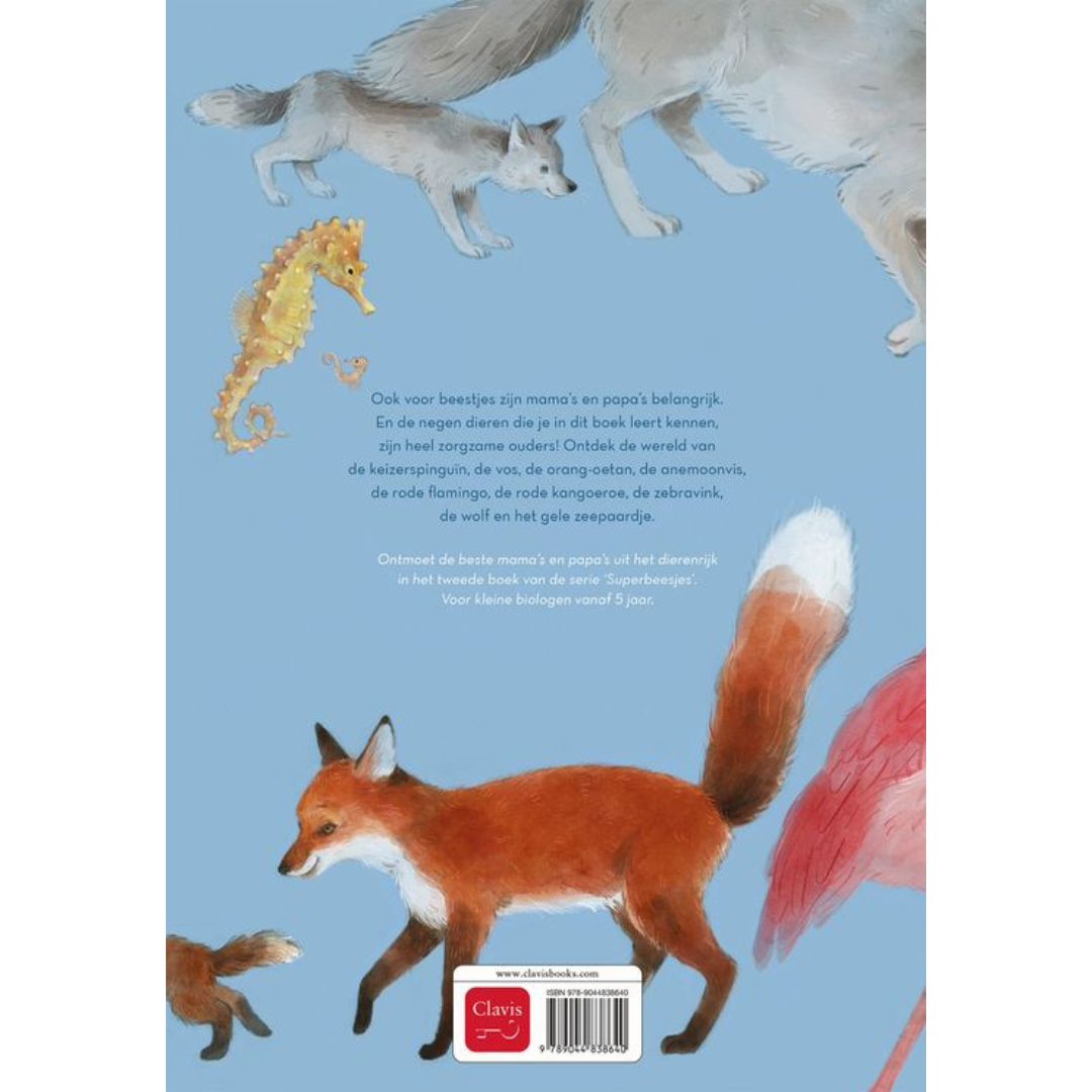 Ontmoet de beste mama’s en papa’s uit het dierenrijk in het tweede boek van de serie ‘Superbeesjes’. Voor kleine biologen vanaf 5 jaar. Ook voor beestjes zijn mama’s en papa’s belangrijk. En de negen dieren die je in dit boek leert kennen, zijn heel zorgzame ouders!