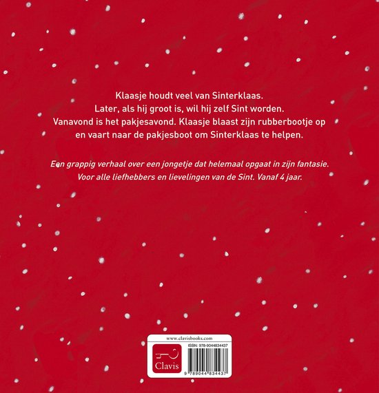 Klaasje houdt veel van Sinterklaas. Later, als hij groot is, wil hij zelf Sint worden. Vanavond is het pakjesavond. Klaasje blaast zijn rubberbootje op en vaart naar de pakjesboot om Sinterklaas te helpen. Een grappig verhaal over een jongetje dat helemaal opgaat in zijn fantasie. Voor alle liefhebbers en lievelingen van de Sint. Vanaf 4 jaar.