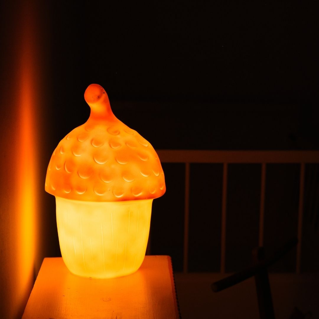 De lamp verspreidt een zacht licht dat kinderen een veilig gevoel geeft tijdens het inslapen. Dankzij de LED-verlichting wordt de lamp niet warm en is ze energiezuinig in gebruik. Het tijdloze ontwerp en de natuurlijke vorm maken van deze eikellamp een mooie toevoeging aan zowel een moderne als een nostalgische kinderkamer.