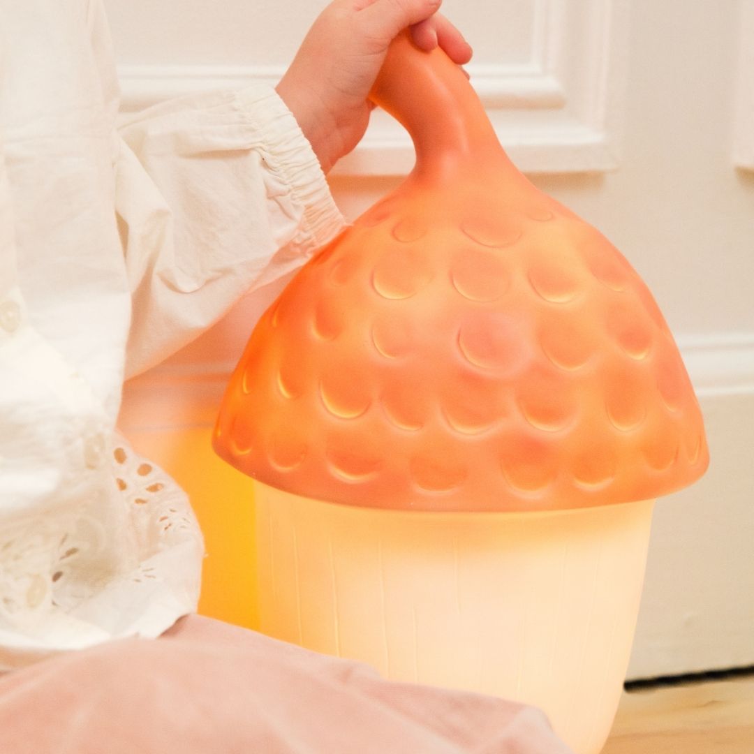 De Egmont Toys Nachtlamp Acorn is een sfeervolle nachtlamp in de vorm van een eikel. De warme terracotta tint en het zachte, diffuse licht zorgen voor een rustgevende en knusse sfeer in de kinderkamer. Ideaal als subtiel nachtlampje naast het bed of als decoratief accent op een kast of plank.