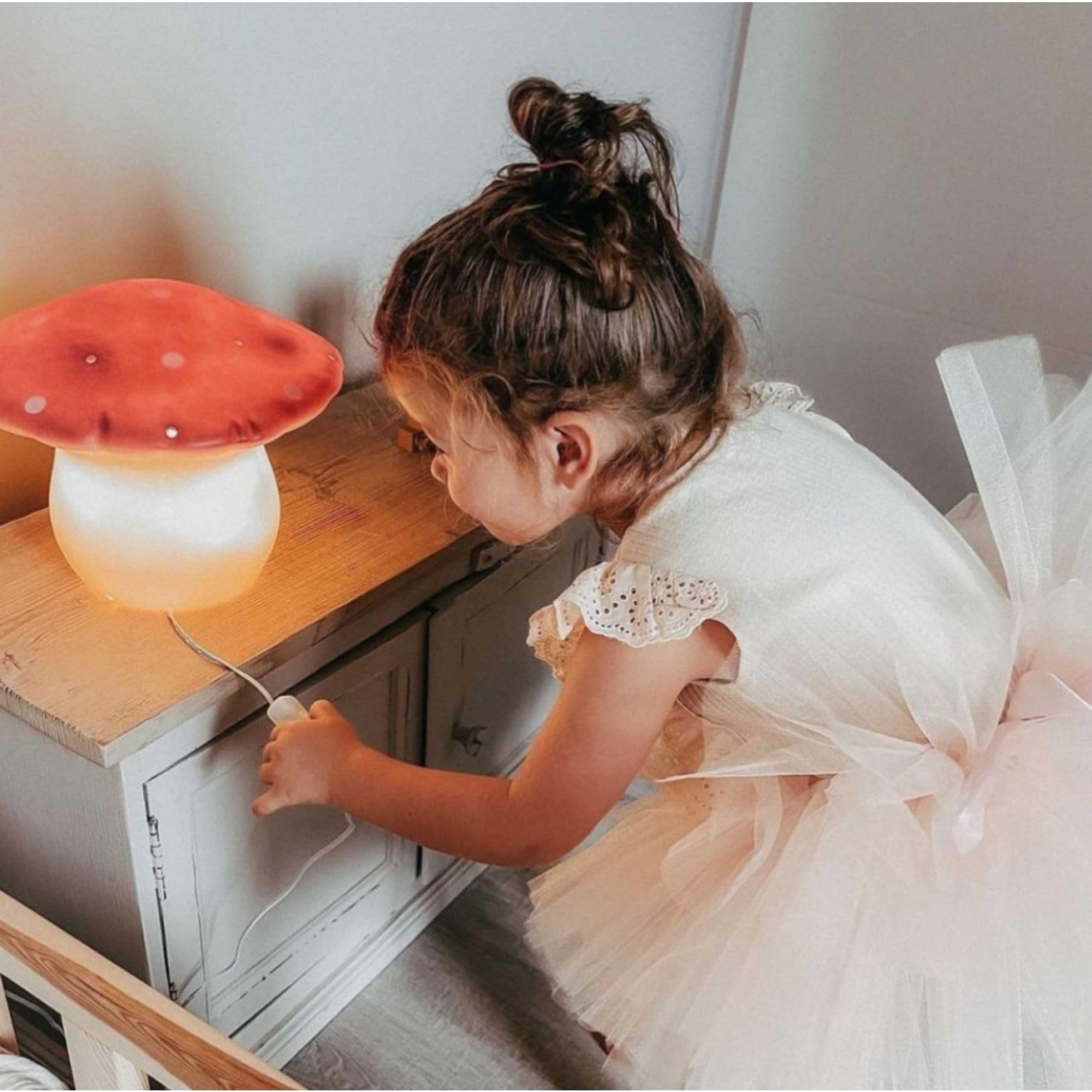 Deze Medium Mokka Mushroom lamp is de perfecte combinatie van sfeer, veiligheid en design – een echt eyecatcher in elke baby‑ of kinderkamer.