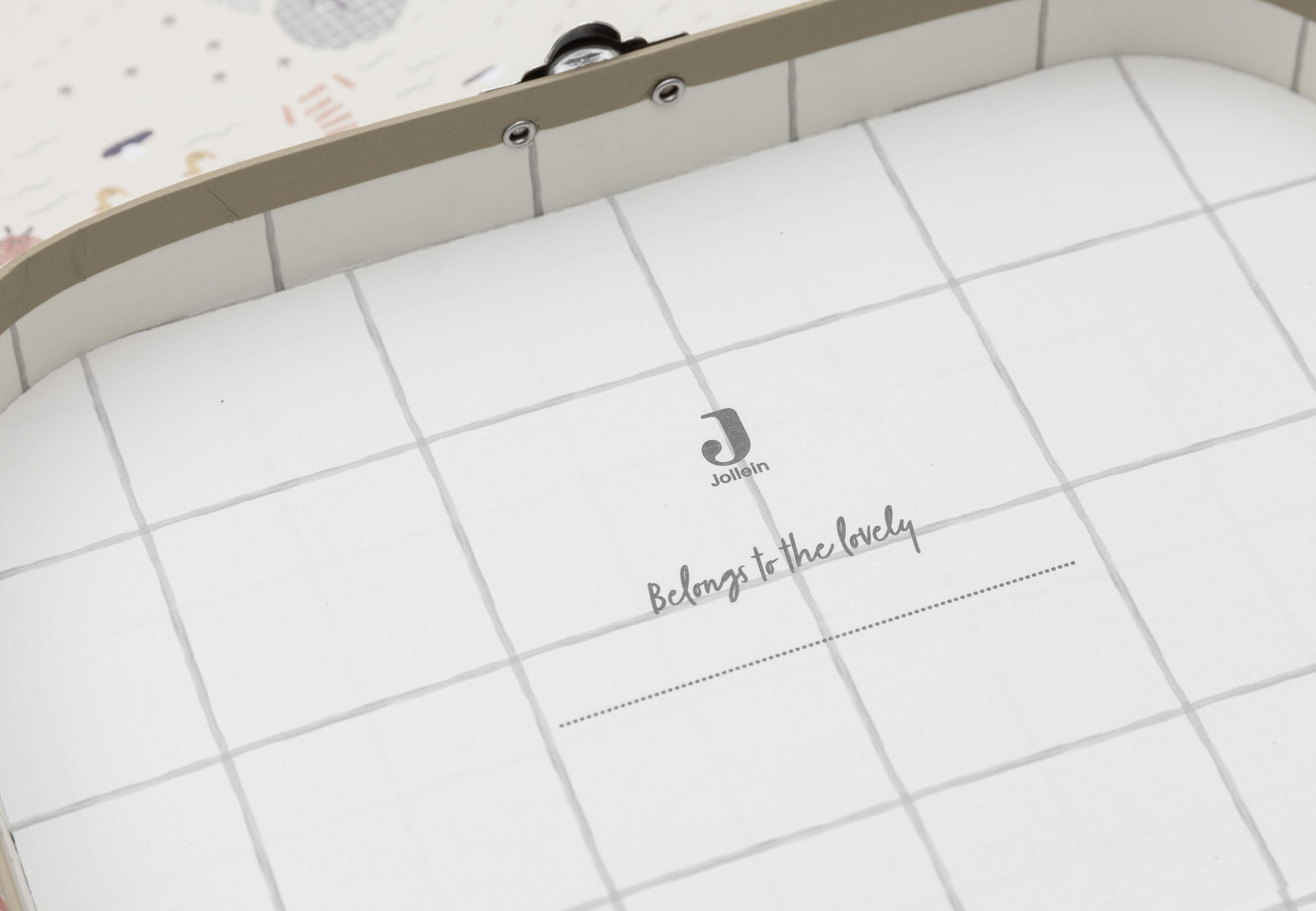 Beide koffertjes hebben een ruitpatroon aan de binnenkant en de tekst ‘belongs to’, zodat jouw mini ze overal mee naartoe kan nemen.