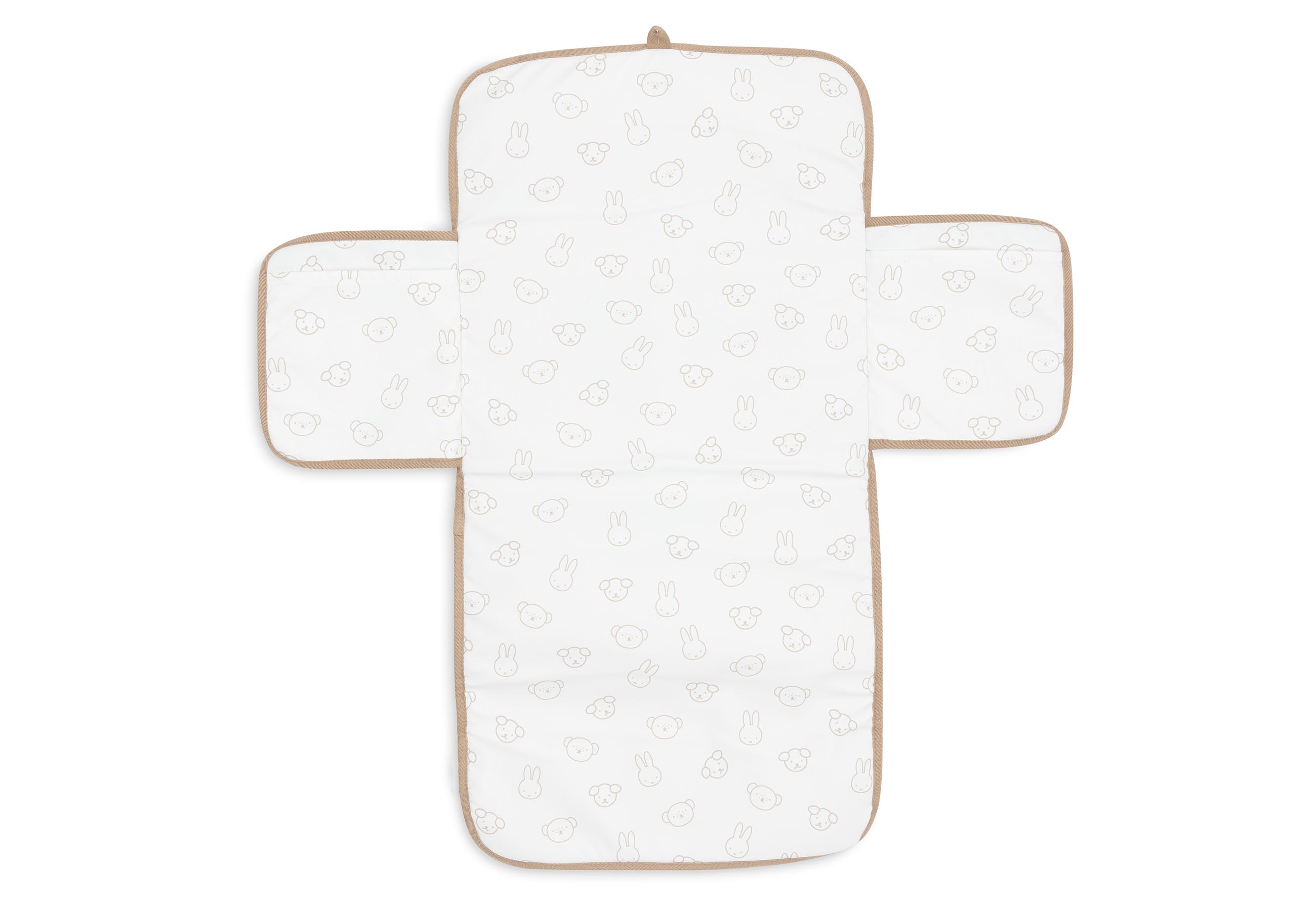 Ons zachte verschoningsmatje is de perfecte must-have voor onderweg! Het matje is gemaakt van teddy jacquard met Miffy hoofdjes aan de buitenkant in een mooie biscuit kleur.