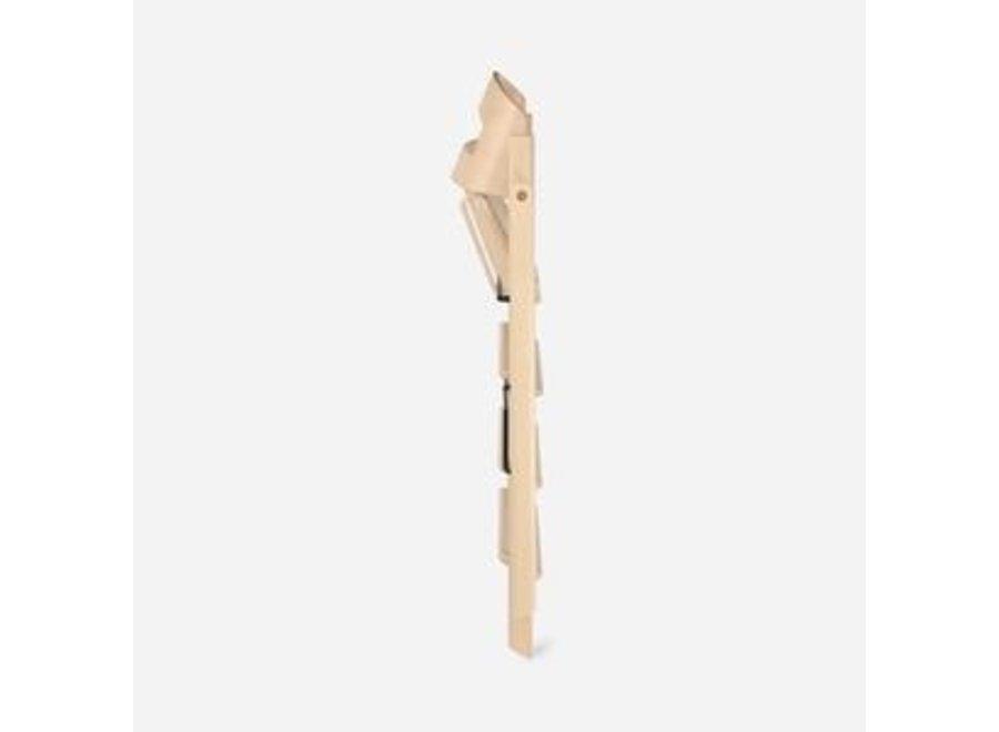 Het slimme klapmechanisme maakt de stoel daarnaast een favoriet in moderne huishoudens: in één beweging vouw je hem volledig plat tot slechts 13 centimeter breed, ideaal om discreet op te bergen of mee te nemen. Opengevouwen sluit de vaste zithoogte perfect aan op een standaard eettafel, zodat je kind meteen betrokken wordt bij elk eetmoment.