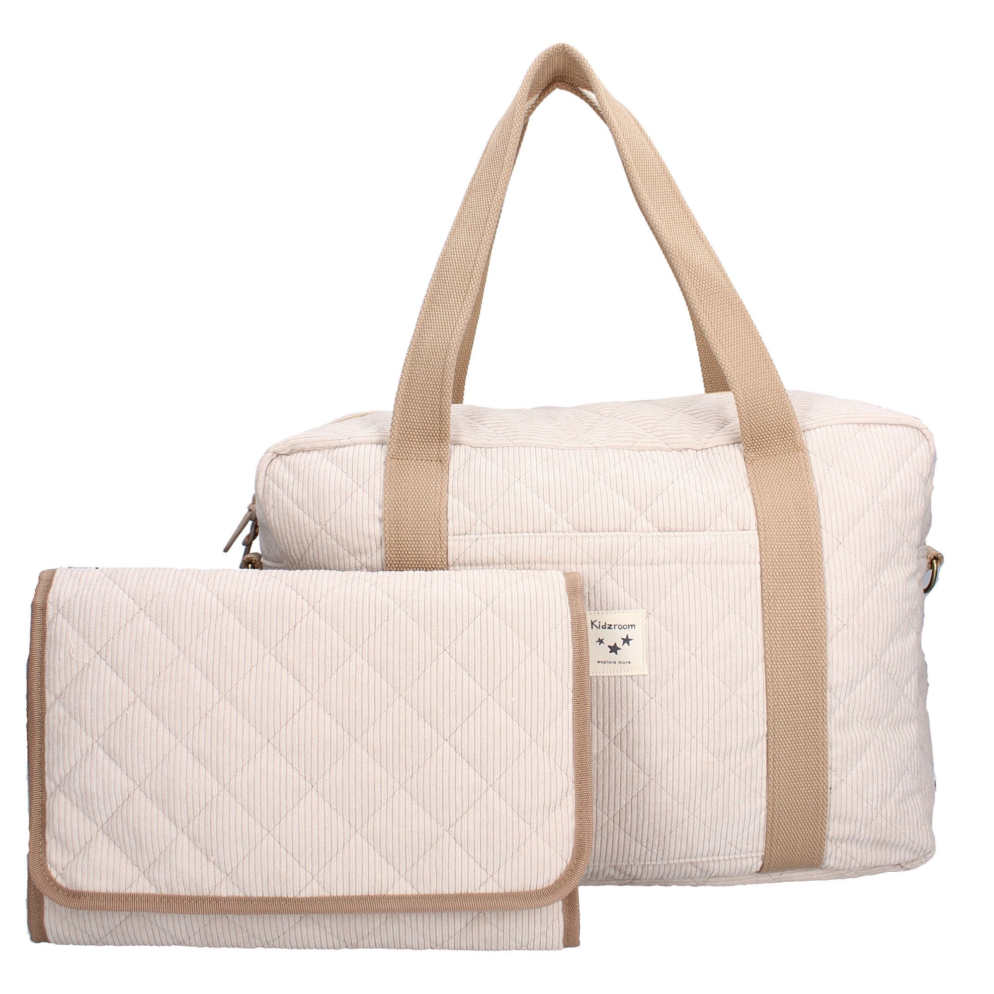 De Kidzroom Luiertas is voorzien van één hoofdvak met drie insteekvakken en een ritsvak. Aan de buitenkant bevinden zich nog drie vakken, waarvan twee 'normale' en een plat vak. De luiertas is voorzien van een bijpassend verschoonmatje en een thermoflessenhouder. De binnenzijde van de Kidzroom Black & White Luiertas is waterafstotend en hij is voorzien van een comfortabele schouderband. Bovendien maak je hem met een eenvoudige handeling snel vast aan je kinderwagen of buggy.