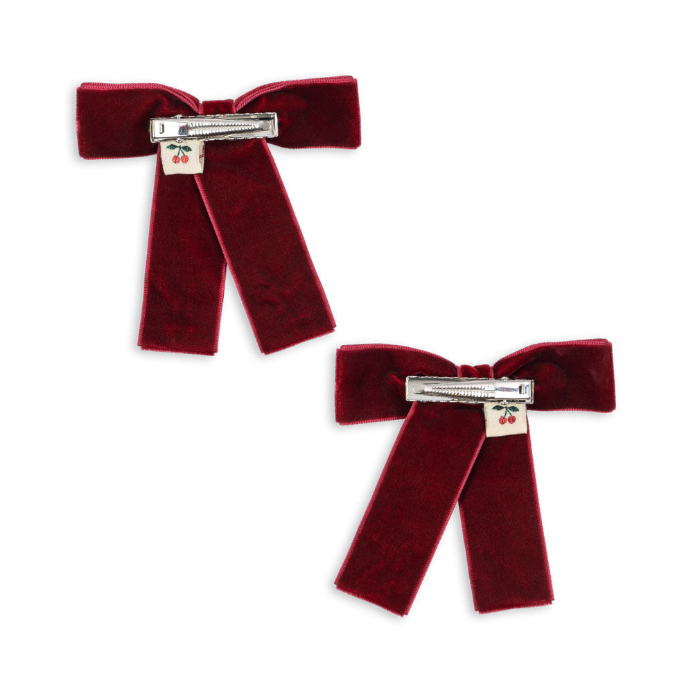 2-pack decoratieve haarspelden met strik gemaakt van zacht fluweel. Ontworpen met een clip-on-functie waardoor ze gemakkelijk aan te trekken zijn. Geschikt vanaf 3j+