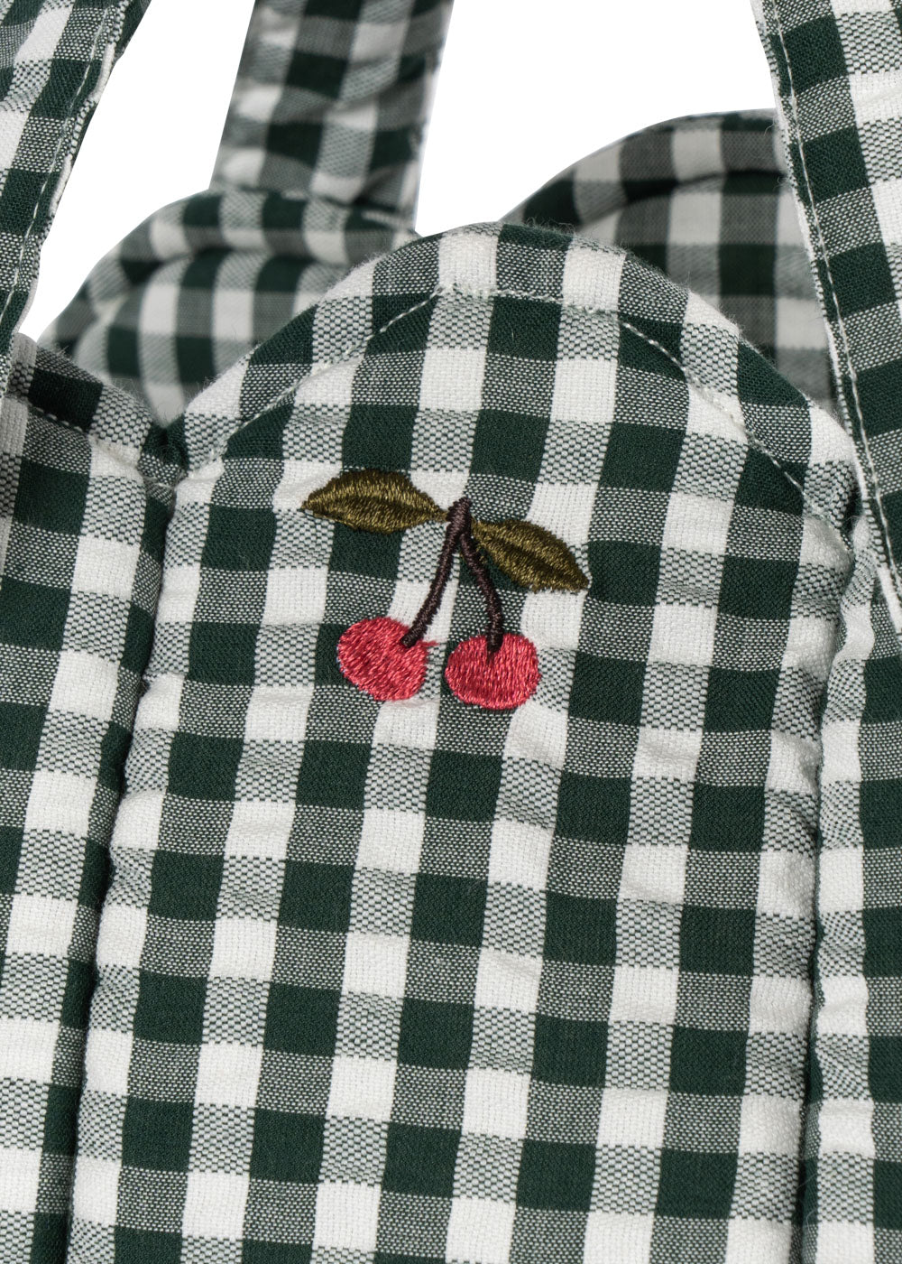 Kleine poppenouders opgelet! Deze schattige poppendraagzak van Konges Slojd is perfect voor kinderen die hun favoriete knuffel of pop overal mee naartoe willen nemen. Ontworpen met zachte schouderbandjes, decoratieve biezen en een speelse scallop-afwerking – helemaal in de herkenbare Konges stijl.