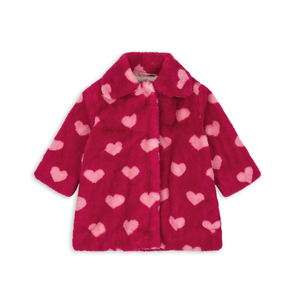 Prachtige zachte jas met een afgeronde kraag, comfortabele zijzakken en praktische drukknopen aan de voorkant. Ontworpen met een zacht A-vormig silhouet dat flatterend en gemakkelijk te dragen is voor je kleinste schat mét de schattigste hartjes!