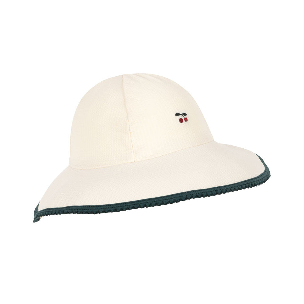 Zwemhoed gemaakt van zachte seersucker stof met een gewatteerde klep. De Sailor zwemhoed beschermt tegen de zon dankzij de hoogste ultravioletbeschermingsfactor UPF 40+.