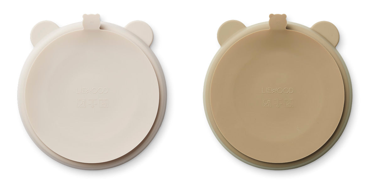 Handig Stacy bord met 3 vakken Sandy oat mix van liewood is super om voedsel in te verdelen. 100% siliconen. 17×2,7 cm. 2-pack.