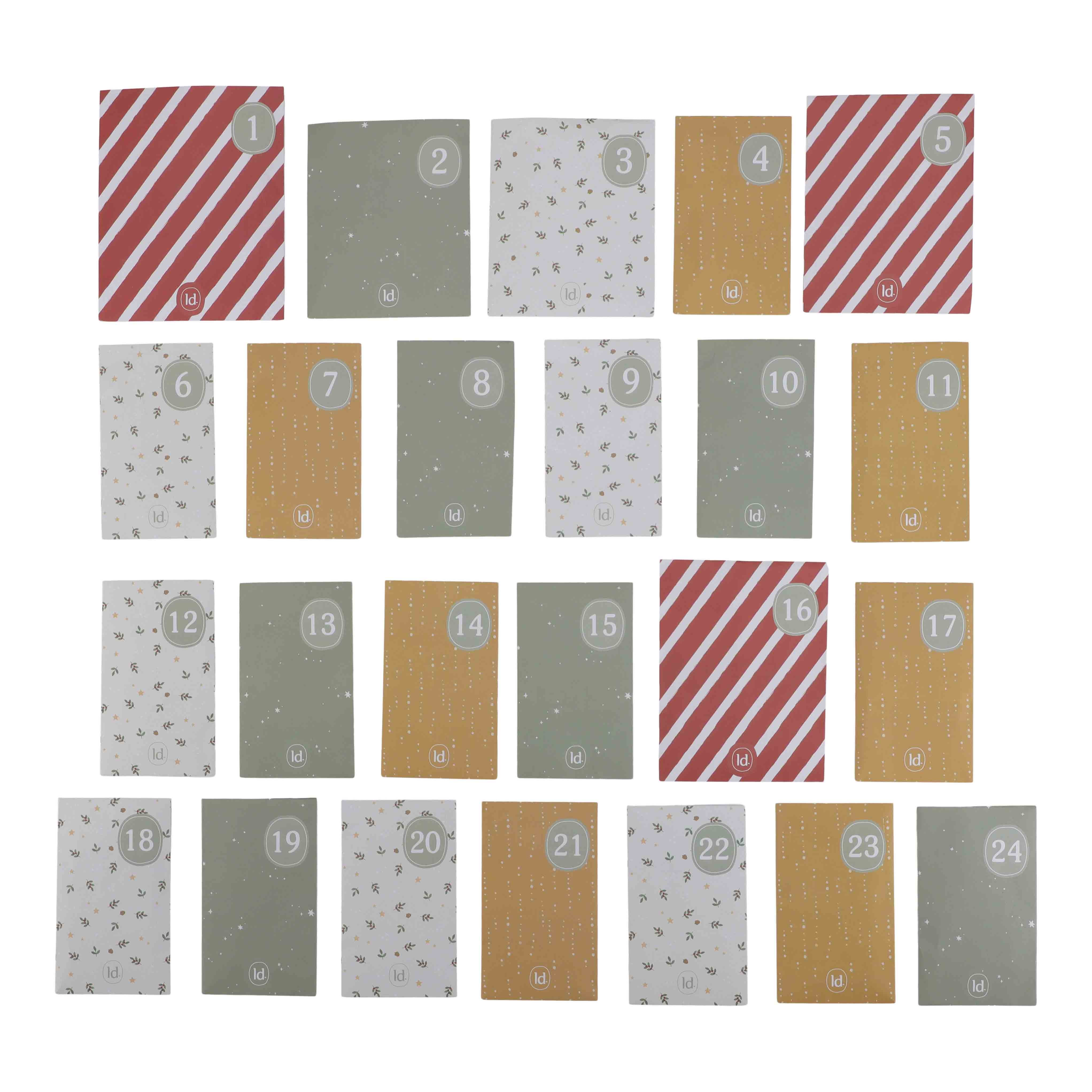 24 genummerde doosjes met houten figuren en accessoires