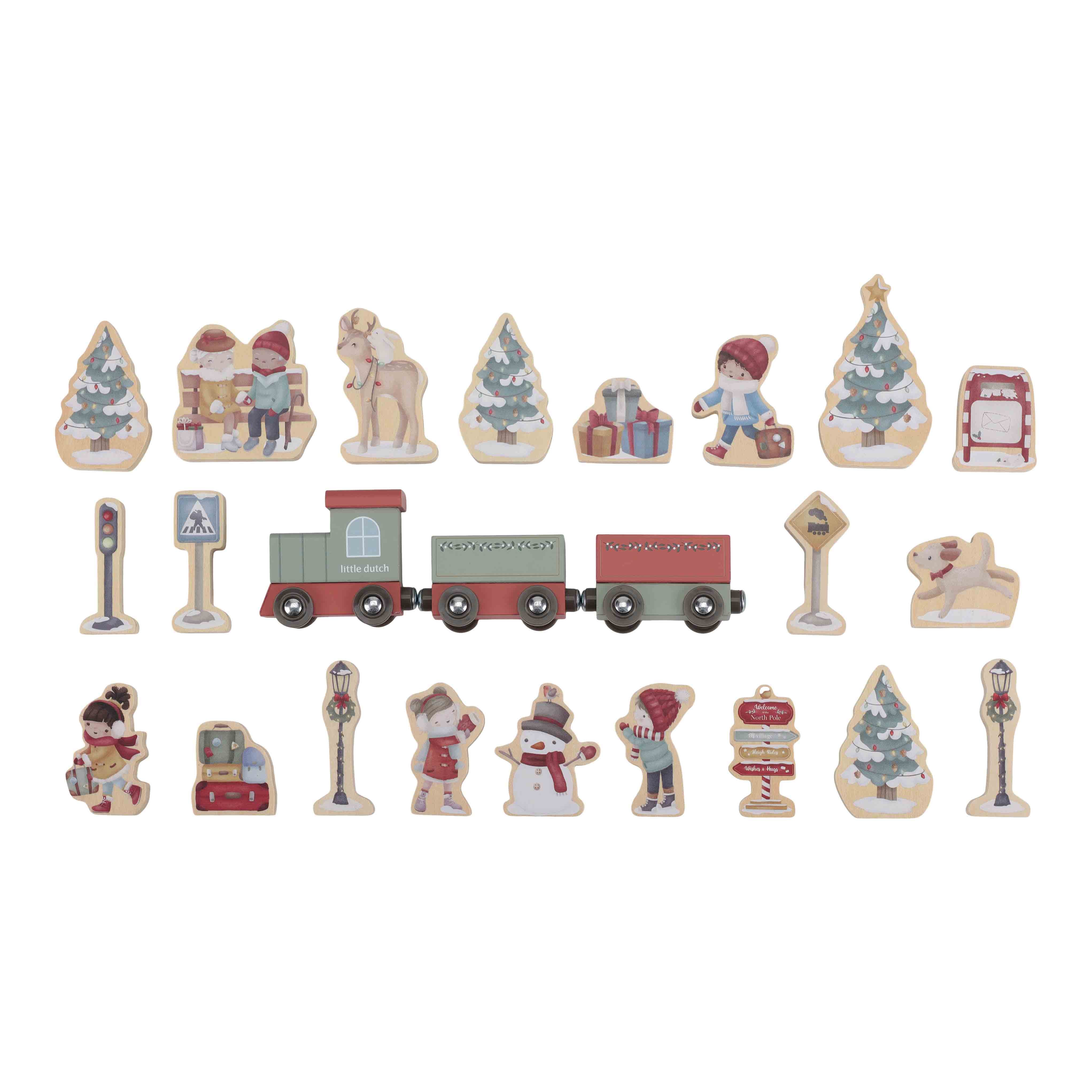 Van een sfeervolle kersttrein tot een sneeuwpop, rendier, verkeersborden, kerstboom en nog veel meer: elk onderdeel helpt om een compleet kerststation op te bouwen. De adventskalender is volledig afgestemd op de Little Dutch Treinbaan XL, waardoor kinderen hun bestaande treinset kunnen uitbreiden met feestelijke details.