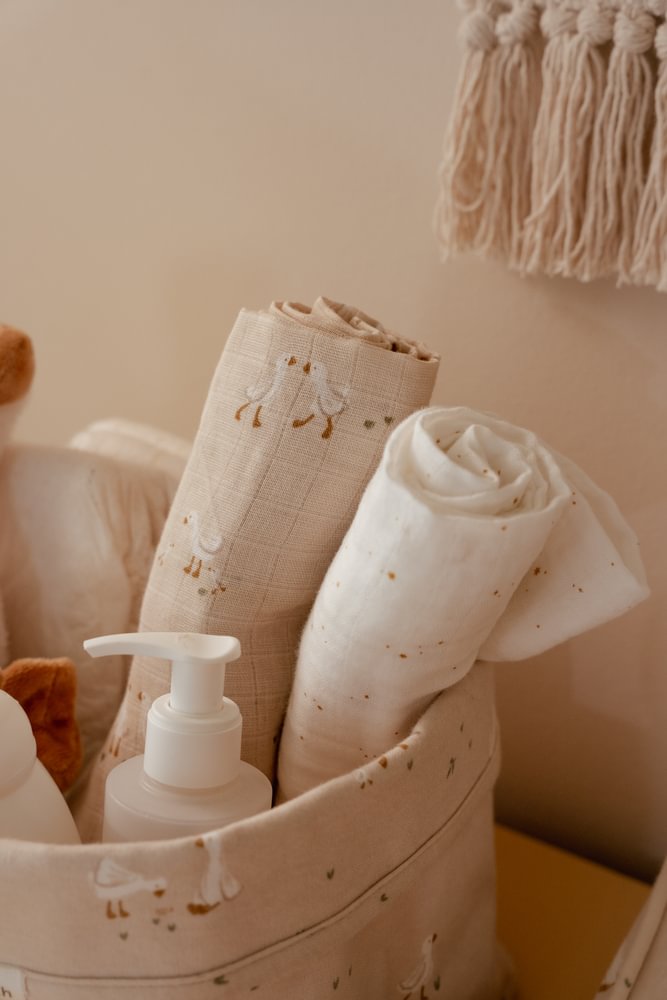 Geen rondslingerende luiers, tubes en flesjes meer: dit Little Dutch commodemandje houdt de verschoontafel netjes en georganiseerd! De Little Dutch commodity mand is mooi afgewerkt en biedt een opbergplek voor alle producten die je dagelijks nodig hebt voor de verzorging van je baby. Een mooi accessoire voor de babykamer. Deze uit de Little Goose collectie in mooie rustige kleur is verrijkt met lieve ganzenprint. Ook verkrijgbaar in andere maten en vormen.