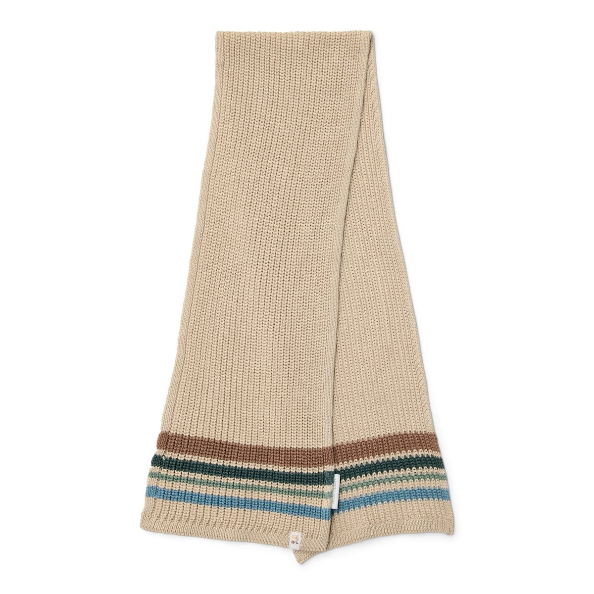 Warm gebreide sjaal met meerkleurige strepen, te combineren met alle items uit de collectie, gemaakt van biologisch katoen, Oekotex gecertificeerd.