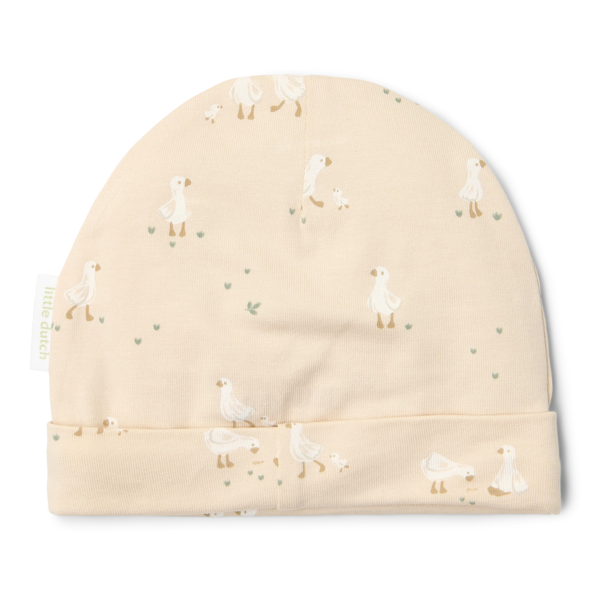 Schattige muts met de lieve Little Goose print, gemaakt van zacht biologisch katoen en Oeko-Tex gecertificeerd. Perfect voor kleine hoofdjes: comfy, veilig en té cute!