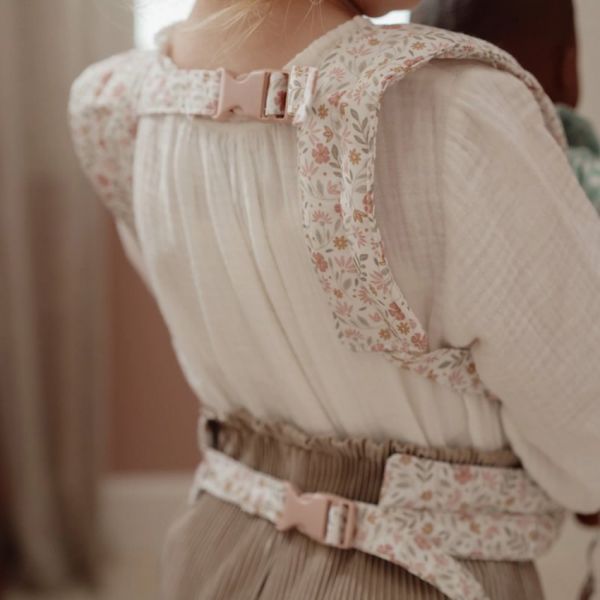 De draagzak is voorzien van verstelbare schouderbanden en sluit eenvoudig met klittenband, waardoor hij geschikt is voor verschillende leeftijden. De vrolijke bloemenprint uit de Flowers & Butterflies collectie maakt dit een prachtig accessoire voor fantasierijk rollenspel. Perfect voor poppenouders vanaf 3 jaar.