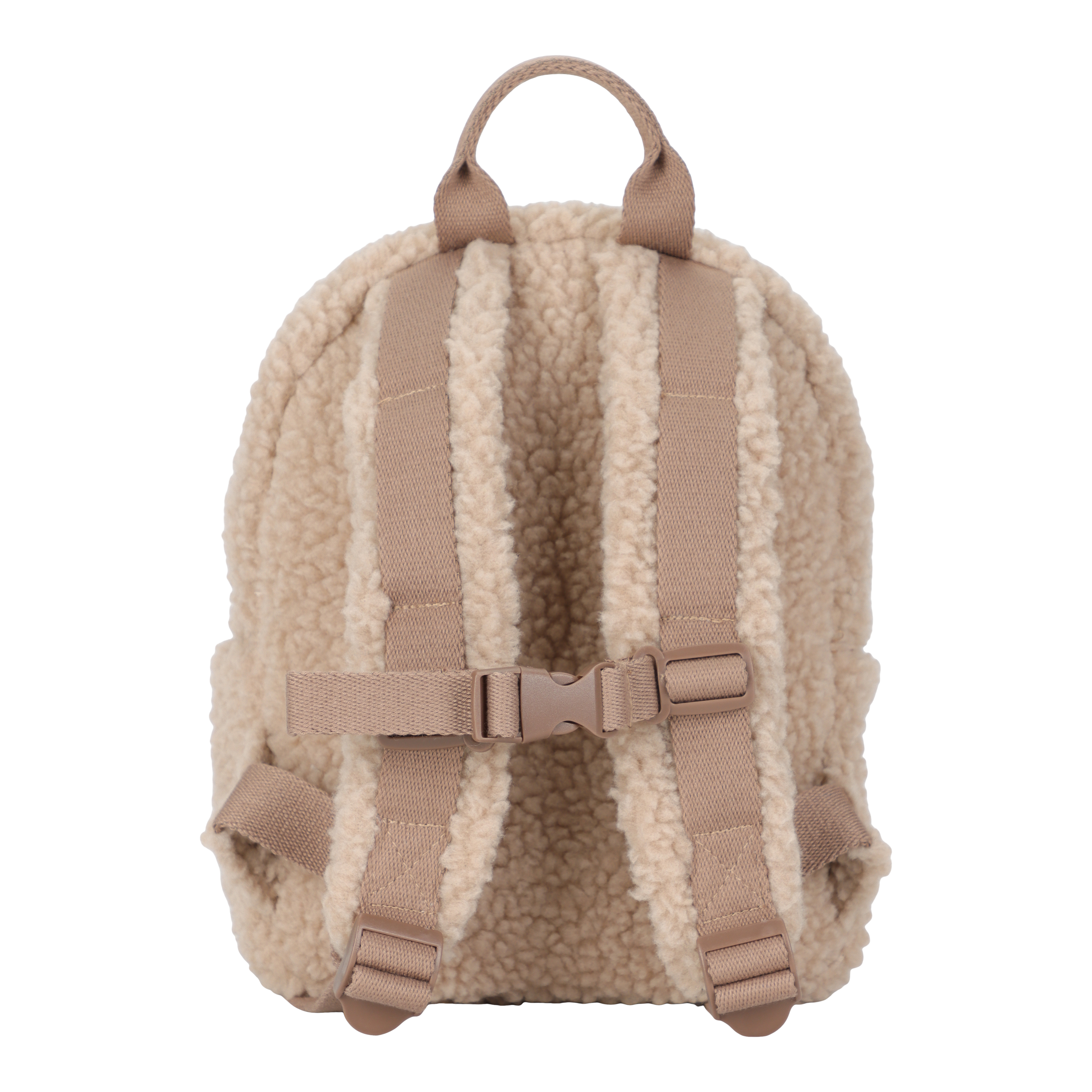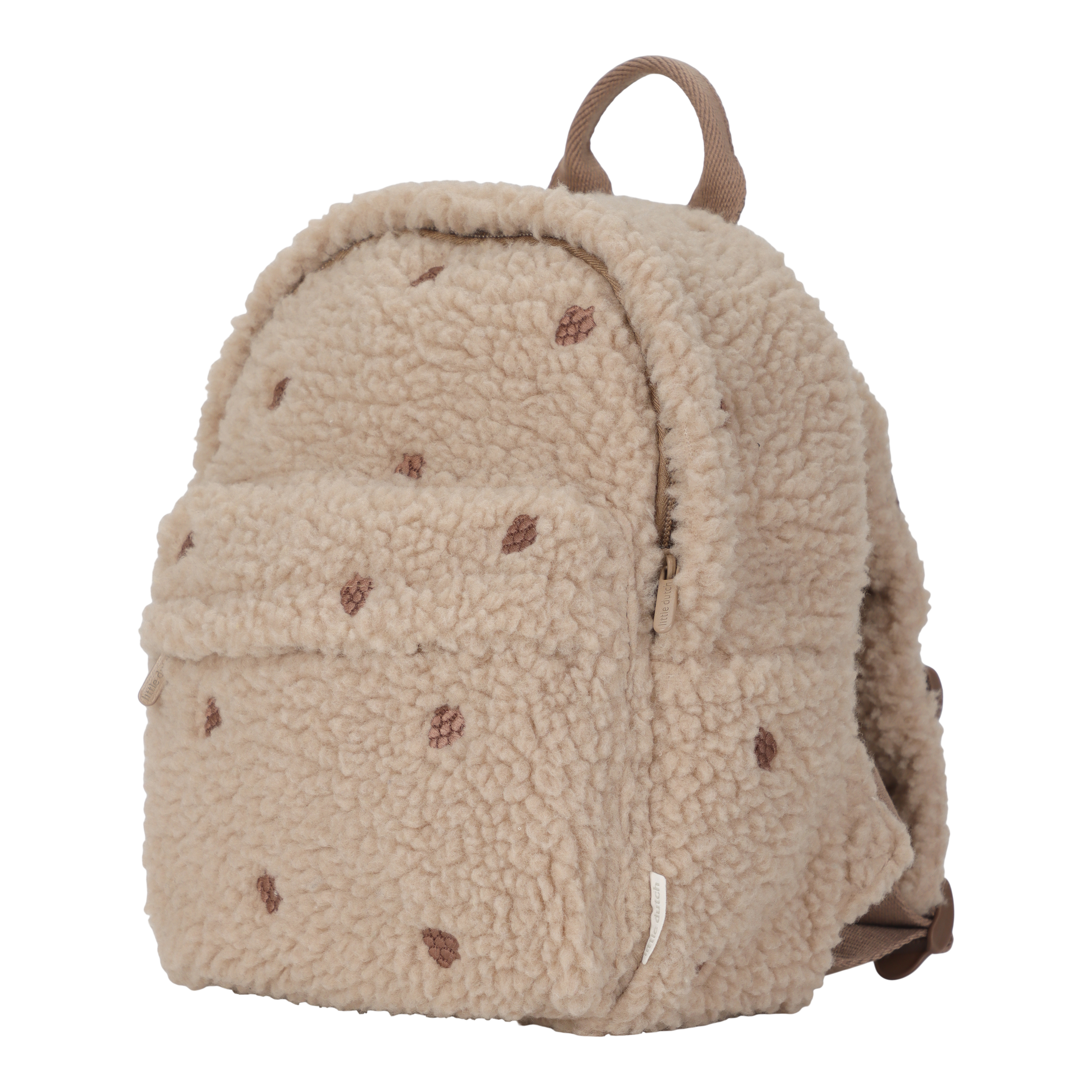 Ga samen op avontuur met deze zachte teddy rugzak in taupe met de schattigste eikeltjes!