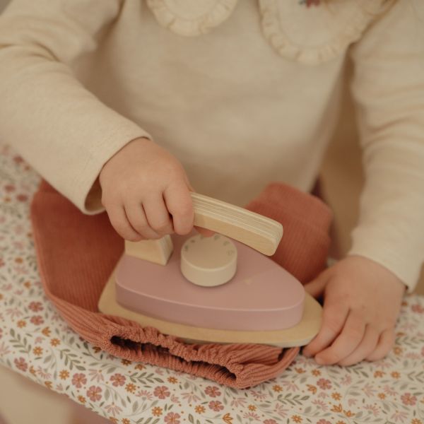 Met de Little Dutch Strijkplank met Strijkijzer wordt huishoudelijk spel écht leuk. Kinderen imiteren graag wat ze thuis zien, en deze prachtige houten set geeft hen alles om “de was te doen”, outfits plat te strijken of samen met mama/papa een rollenspel te bedenken. De strijkplank is volledig in Little Dutch-stijl: zacht, tijdloos, stevig en ontworpen om jarenlang mee te gaan.