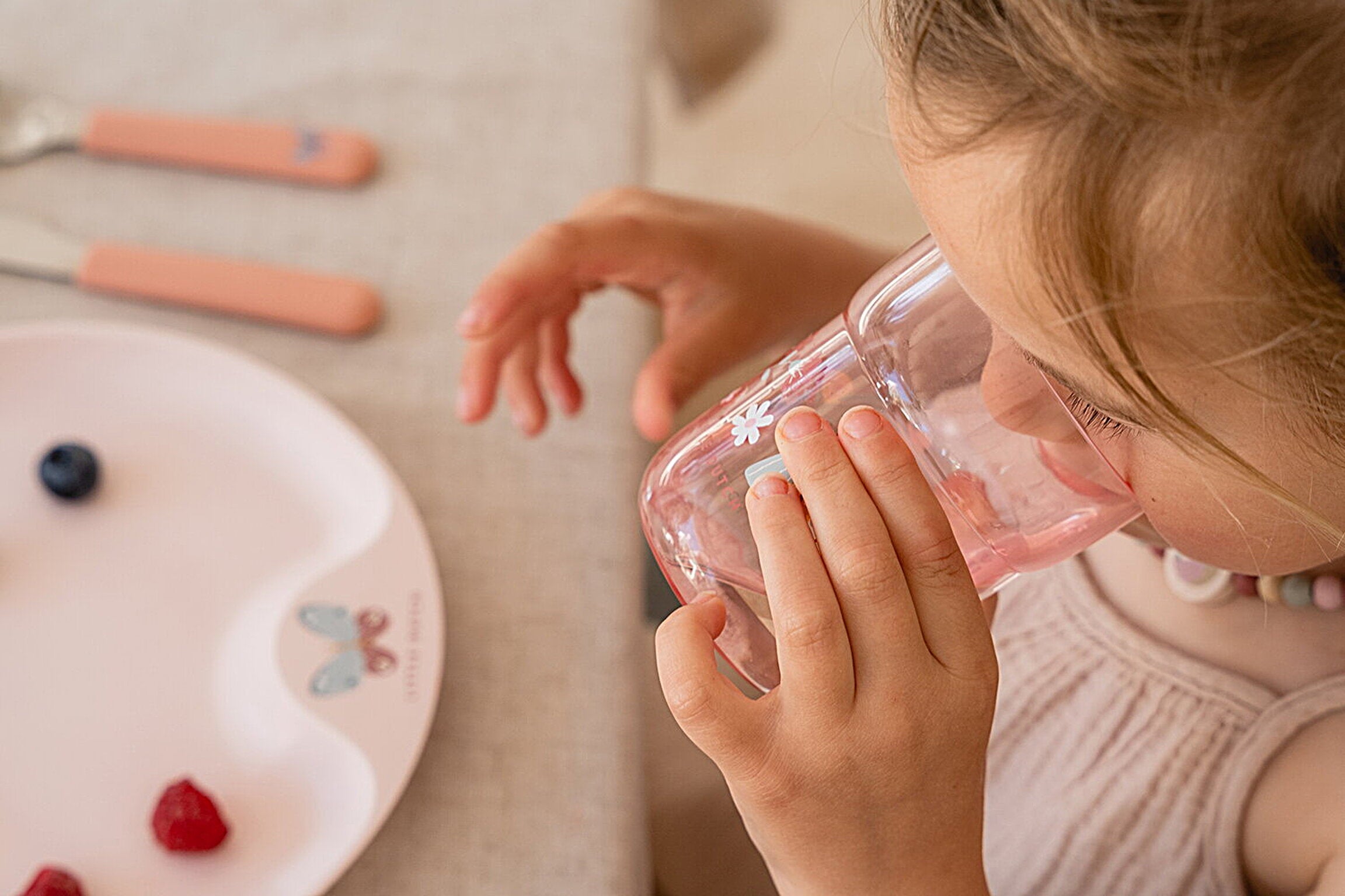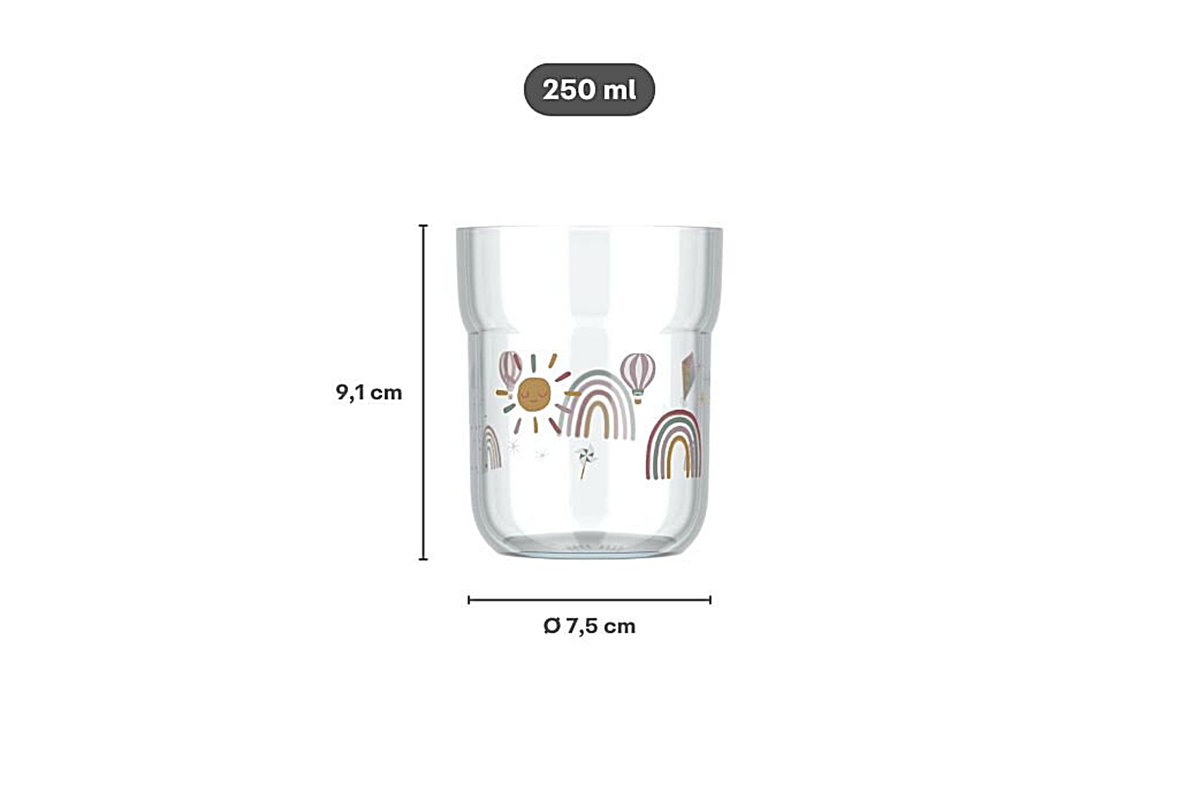 Met een inhoud van 250 ml is het perfect voor water, sap of melk, en dankzij het transparante design met kleurrijke bloemen en vlinders drinken kinderen met nog meer plezier. Het glas is vaatwasserbestendig, BPA-vrij en ideaal voor dagelijks gebruik thuis of op school. Zo wordt zelfstandig drinken niet alleen makkelijk, maar ook leuk!