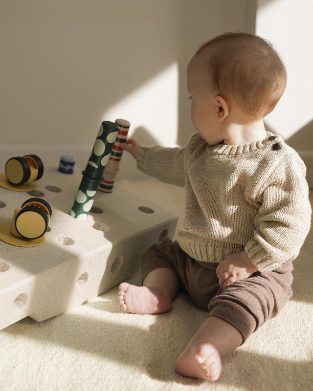 De pegs zijn multifunctioneel ontworpen en dienen tegelijk als rammelaars met leuke geluiden en patronen. Perfect om de zintuigen van je baby te prikkelen en de motorische ontwikkeling te stimuleren.