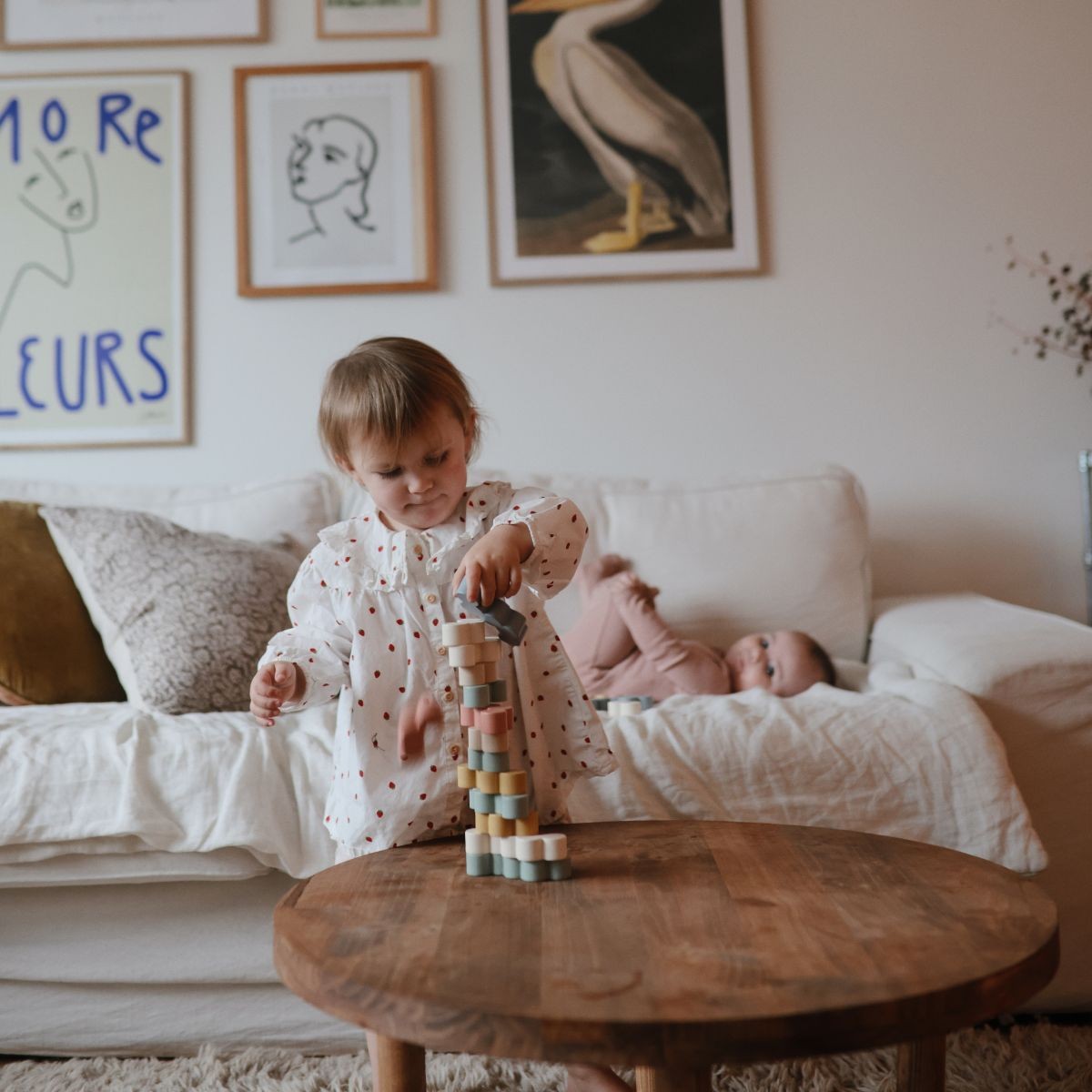 Deze blokken zijn niet alleen leuk om mee te spelen, maar stimuleren ook de fijne motoriek, het evenwichtsgevoel én het probleemoplossend denken. Gemaakt van FSC-gecertificeerd hout en afgewerkt met niet-giftige verf in zachte, rustgevende kleuren – veilig voor nieuwsgierige handjes én een lust voor het oog.