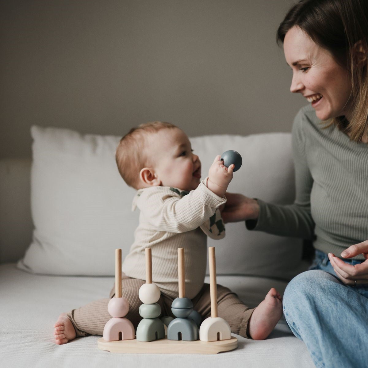 Stimuleer de fijne motoriek en het probleemoplossend vermogen van je kindje met deze stijlvolle houten stapelaar van Mushie. De set bestaat uit verschillende vormen en zachte kleuren die perfect passen in elke kinderkamer. Gemaakt van duurzaam hout en veilig voor kleine handjes: ideaal voor uren speelplezier én educatie.