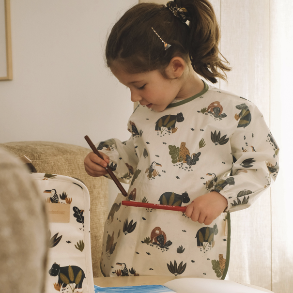 Deze mooie waterproof slab met mouwen is een must-have. Je sluit deze Nobodinoz slab aan de achterzijde met een klittenband. Deze slab beschikt zelfs over een opvangbakje, superhandig! YAY!