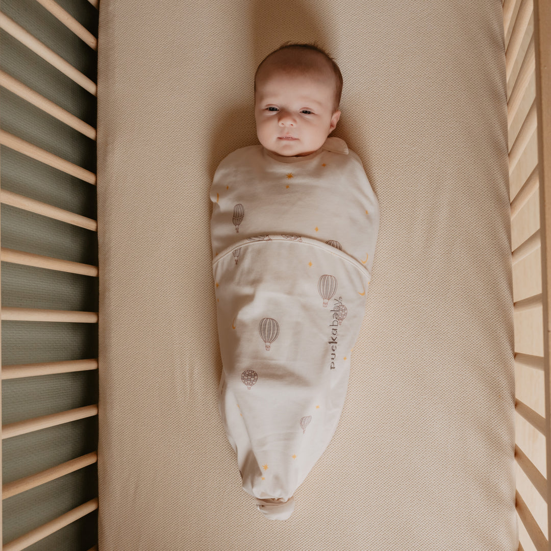 Puckababy inbakerslaapzak om je baby veilig in te bakeren. Slaapoplossing voor baby's die vaak huilen. Bevordert een gezond slaapritme. Deze gepatenteerde en bekroonde inbakerslaapzak past perfect: niet te strak, niet te warm, eenvoudig te gebruiken en stijlvol. Gemaakt van 100% katoen. 0.5 TOG. Een leuk coconnetje met prachtige details. Voor ouders die enkel het beste voor hun kleintje willen. Nederlands design, gemaakt in Europa.