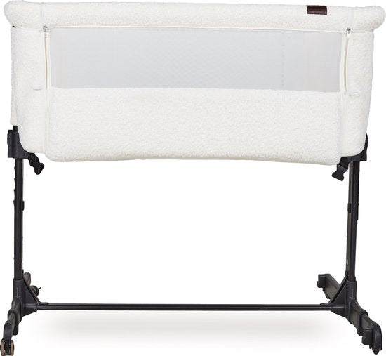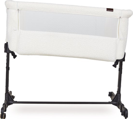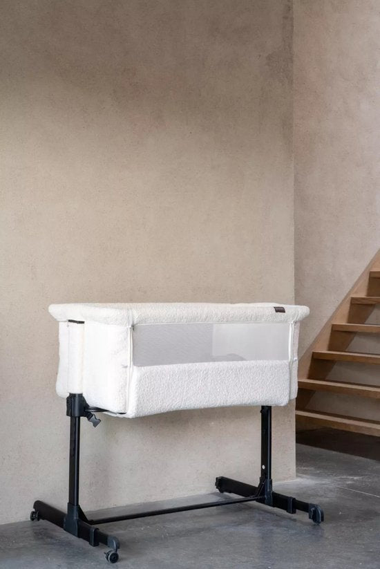 Deze co-sleeper van Quax wordt geleverd met wieltjes, handig om te kunnen vervoeren! De poten kan je verstellen in hoogte.