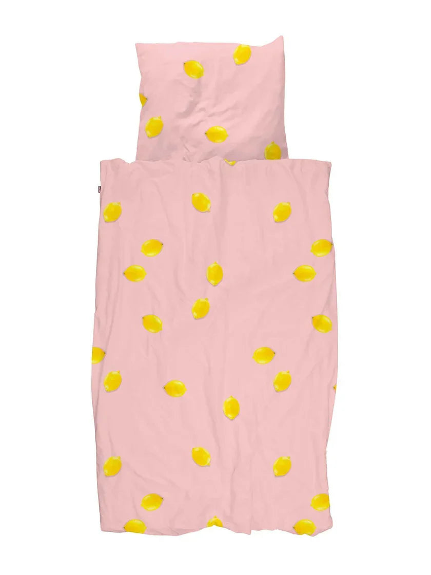 When life gives you lemons, make lemonade. Wij besloten er echter zacht beddengoed van te maken. Want frisse citroenen op een roze achtergrond – dat is toch een droomcombinatie? Het brengt direct zomervibes in je slaapkamer. Of het nu regent, sneeuwt of gewoon maandagochtend is: hieronder word je wakker met een glimlach.