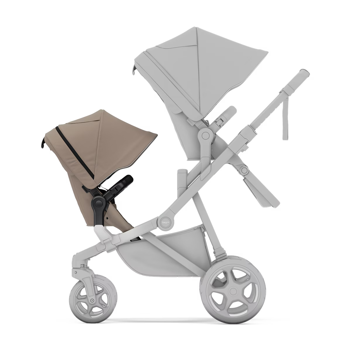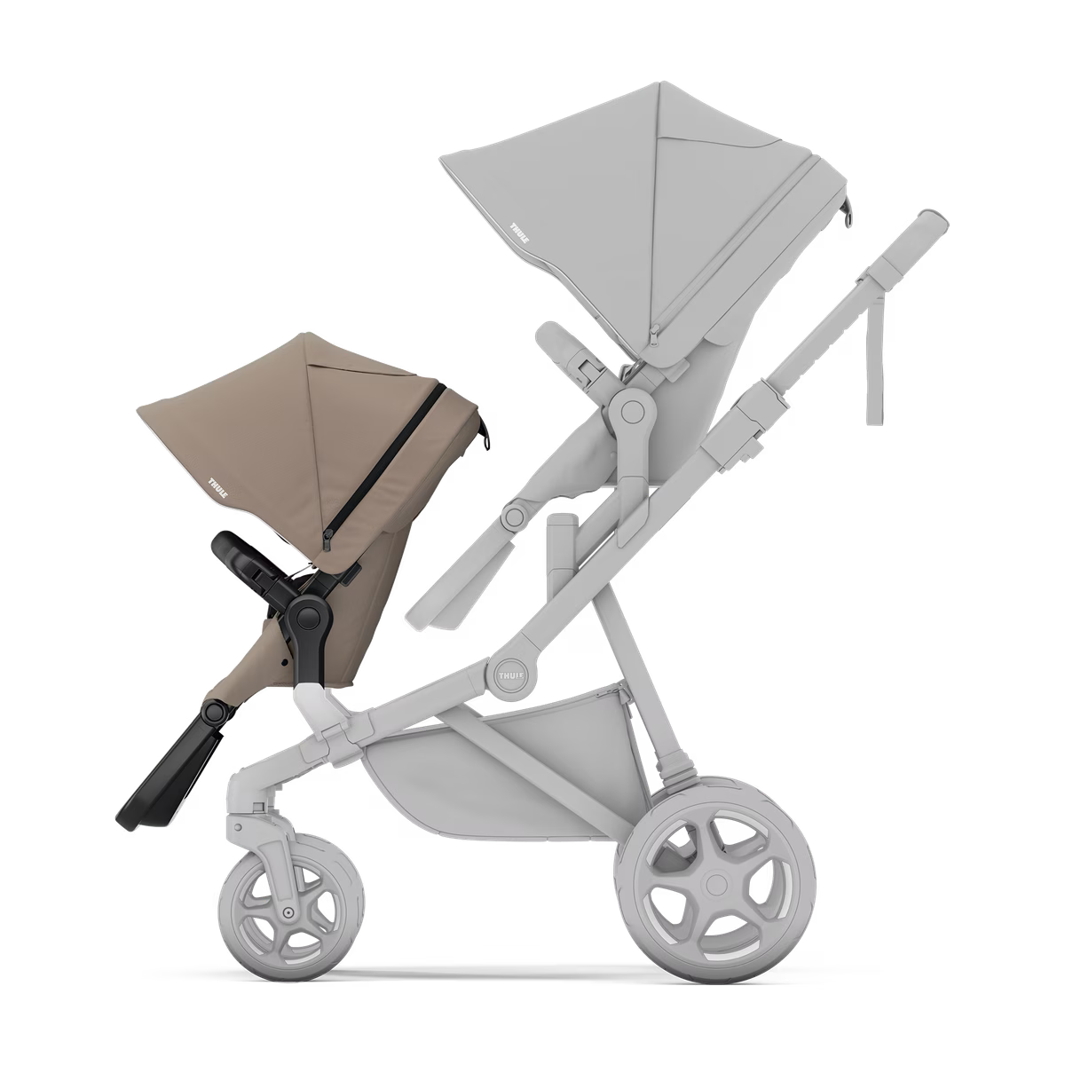 Een comfortabele en ruime stoel die uw Thule Sleek 2 in een dubbele kinderwagen verandert.