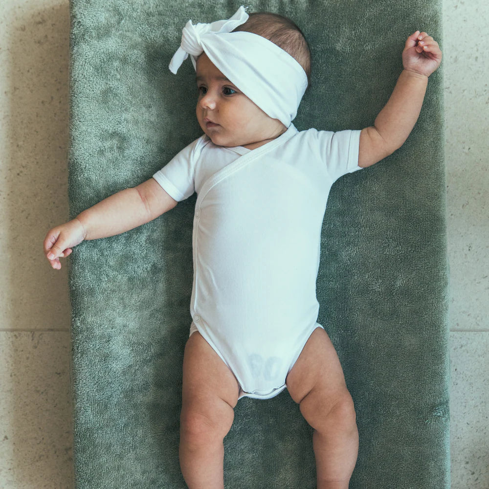 De waskussenhoes uit bamboe-badstof die 60% meer absorbeert dan katoen is de ideale ondergrond voor de verzorging van uw baby. De hoes is afgewerkt met een elastiek achteraan en laat zich daardoor makkelijk over het waskussen spannen. De hoeken van het waskussen worden volledig door de hoes omvat.