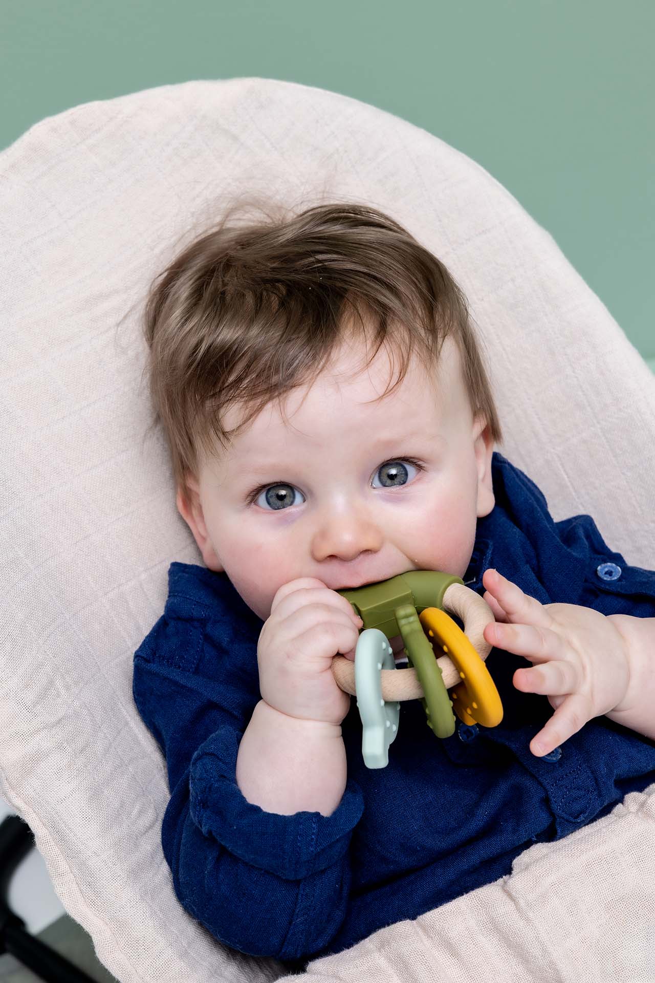 Eindelijk een sleutelbos die wél vindbaar is! Met een stevige houten ring en drie kleurrijke siliconen sleutels om op te sabbelen. Veilig, vrolijk en ideaal tegen doorkomende tandjes. Stimuleert spelenderwijs de fijne motoriek en oog-handcoördinatie. Beschikbaar in verschillende versies van de verschillende leuke Trixie diertjes.