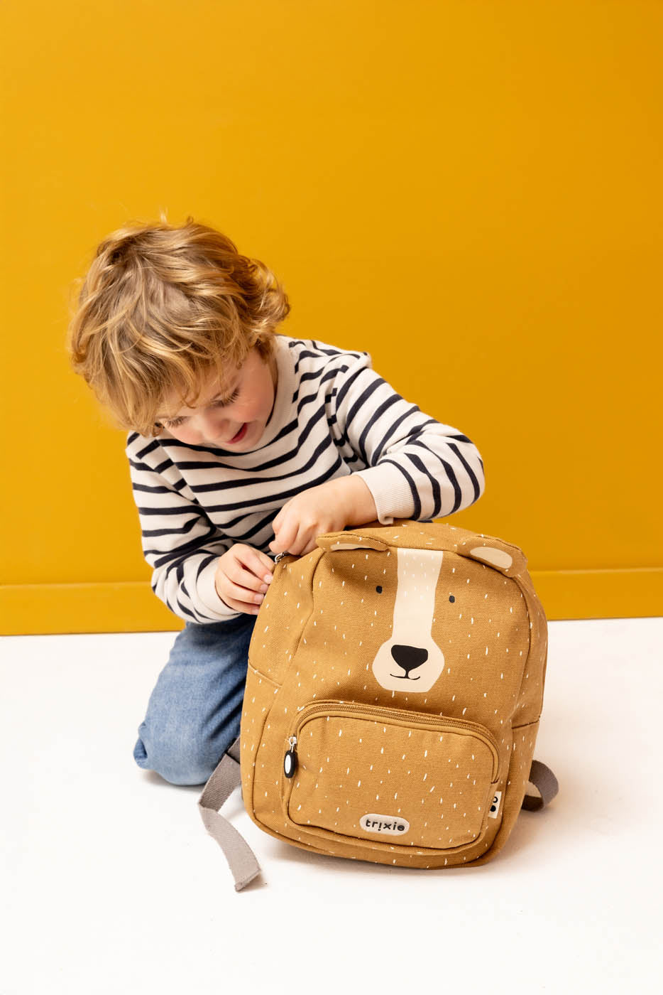 Kijk hoe stoer de nieuwe rugzakjes van Trixie zijn. Het heeft alle belangrijke functies gebundeld in een kleine rugzak! De rugzak heeft één hoofdvak en een apart vakje aan de voorkant. Beide hebben een grote ritstrekker die perfect is voor kleine vingertjes. De gevoerde en verstelbare schouderbanden zijn voorzien van een borstriem. Deze riem voorkomt dat de schouderriemen van de schouders vallen.