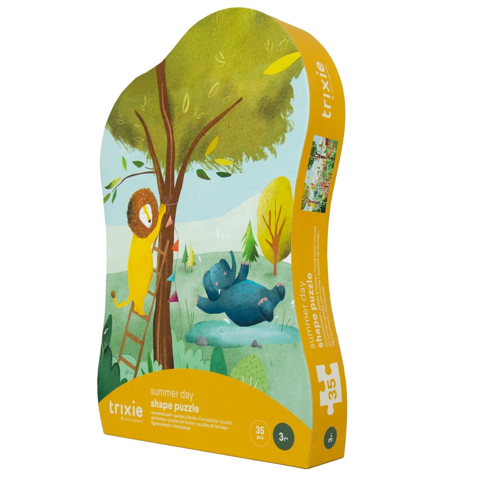 Deze kleurrijke puzzel met 35 stukjes zit boordevol zonneschijn, dierenvriendjes en vrolijke activiteiten. Perfect voor kleine puzzelaars die spelenderwijs hun motoriek en probleemoplossend denken ontwikkelen. Fietsen, plonzen, dutten: alles komt voorbij!
